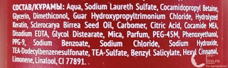 В составе очищающего средства из этой серии можно найти специальный гидролизованный кератин, который лучше всего усваивается и мгновенно запускает процесс кератинизации волосяного стержня. Благодаря этому компоненту волоски с первых же применений становятся более упругими, прочными и шелковистыми, приобретают силу и эластичность. Продукт обладает очень мягкой формулой, поэтому использовать его можно на волосах всех типов.