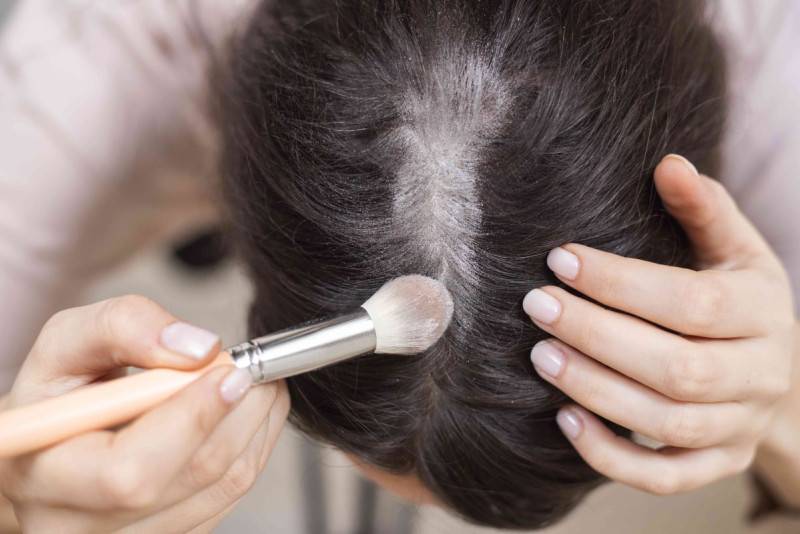 Сухой шампунь в форме порошка лучше всего наносить с помощью кисточки.