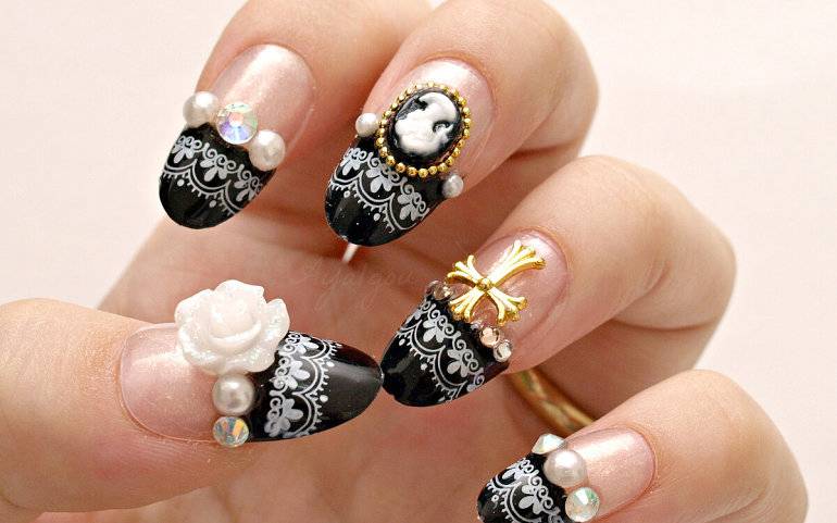 3D-лепку наносят на всю пластину, покрытую прозрачным лаком, или ее часть. Так как дизайн относится к выразительным, броским, обычно акцентируют только один или два пальчика. Остальные оформляются в монохромной гамме. Как делается лепка?
