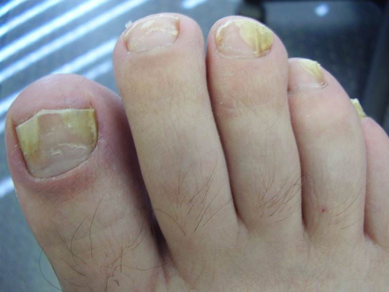 Поражение может встречаться не только на самих ногтях, заболевание может сопровождаться порчей чувствительной ткани на ногах.