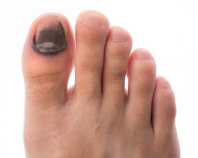 - механические травмы ногтей ног (сильные удары, сдавления и т. п.);
