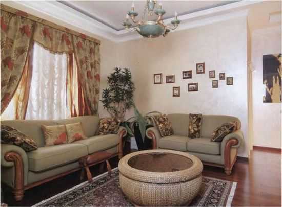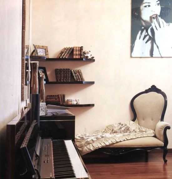Диваны и столы имеют округлые формы, а вот другие предметы мебели предусматривают наличие острых углов. В гостиной находится фортепиано. Сати любит домашние растения, поэтому их в ее жилище довольно много.