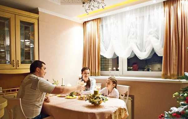 Излюбленным местом актрисы является кухня. Ее украшают деревянный светло-коричневый гарнитур и кремово-розовый текстиль. Французские тюли — изюминка декора. Они создают атмосферу праздника.