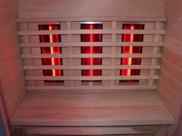 1. Внутри компактной сауны нет каменки и сухого горячего пара. Ее работа заключается в нагревании специальных инфракрасных ламп по периметру помещения. Пробыть в такой сауне можно гораздо дольше, чем в классической.