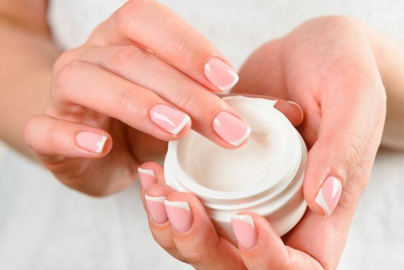 После процедуры следует воспользоваться питательным кремом для рук. Справиться с трещинками и мозолями помогут ванночки из раствора ложки крахмала в литре теплой воды. После пятнадцатиминутного воздействия раствора кожу и ногти обрабатывают кремом.