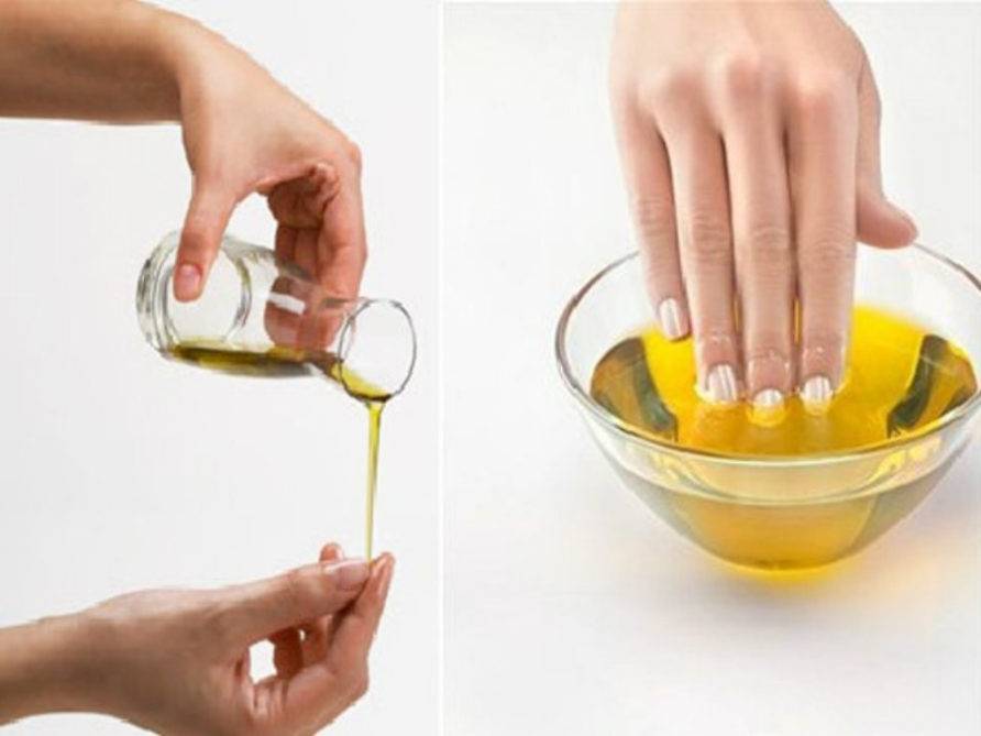 Возьмите по 1 ст.л. оливкового и касторового масла. Подогрейте их на водяной бане. Ногти опустите на 5-10 минут. Такая процедура заметно увлажнит ногтевую пластину и насытит ее полезными веществами.