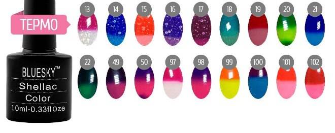 Палитра термо-гель-лаков Bluesky