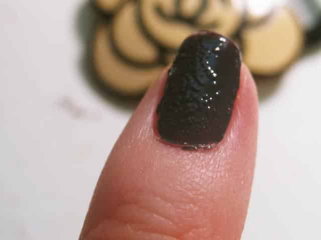 Здесь важно, чтобы красящее вещество было распределено по поверхности тонким слоем. В противном случае маникюр будет испорчен (образуются неровности).