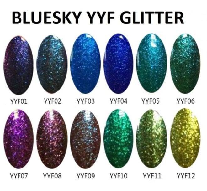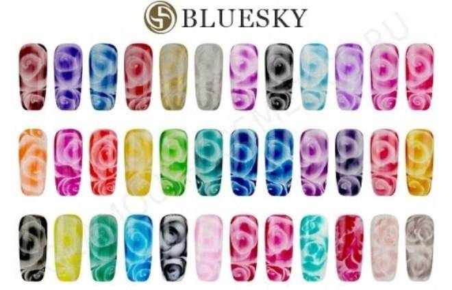 В целом все коллекции гель-лаков Bluesky насчитывают более 600 оттенков. Среди них можно найти покрытие любой фактуры, различные эффекты, наличие в гель-лаке мелких и крупных блесток, перламутровые вариации, эффект неонового покрытия, эффект «металлик», «кошачий глаз» и многое другое.