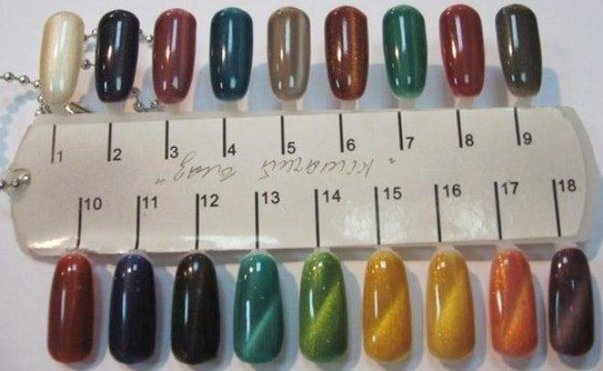 «Кошачий глаз» готовы предложить различные производители гель-лаков, но Bluesky предлагает коллекцию, включающую более ста различных оттенков.