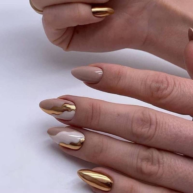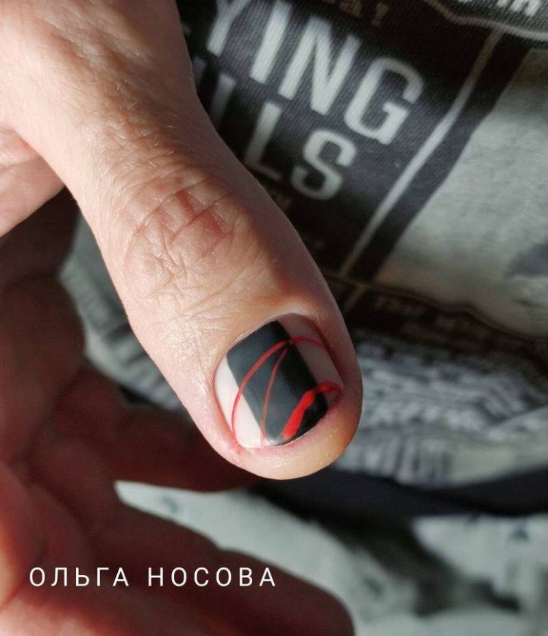 - Мысленно поделите ноготок на две части и покрасьте каждую выбранным тоном;