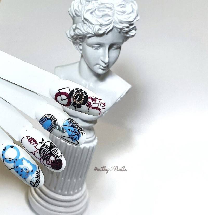 - Перенесите на ноготок выбранный узор с помощью техники стемпинга;