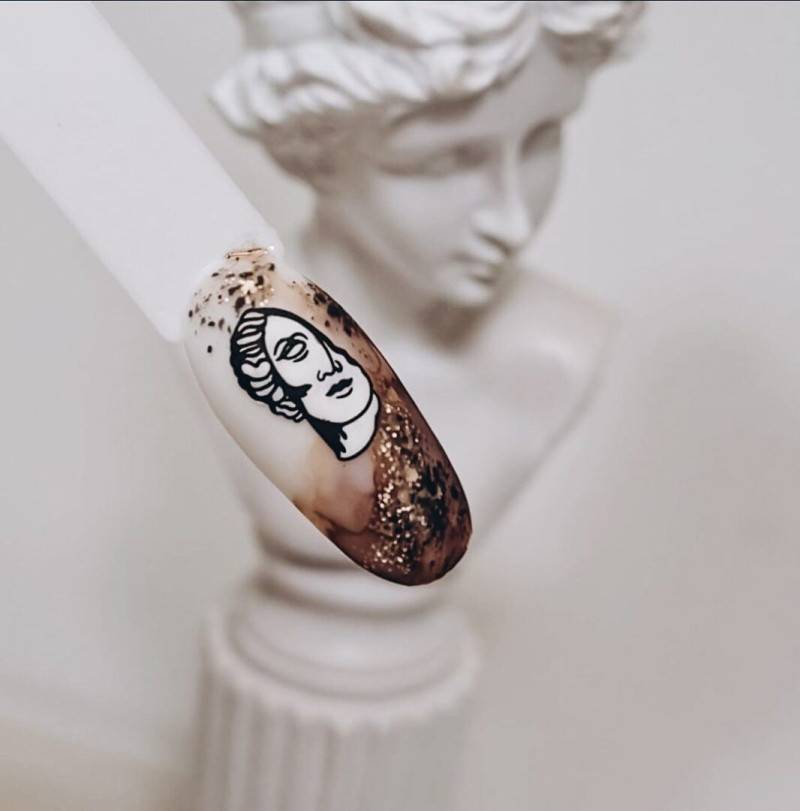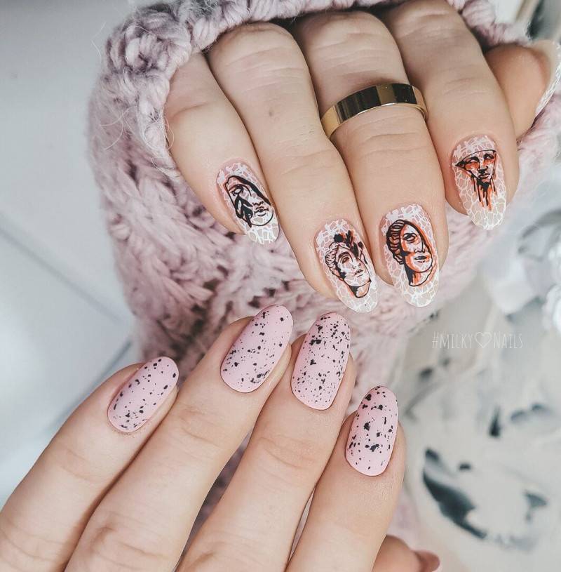 Рисунки подойдут любой модели, готовой на эксперименты. В моде сюжеты или обычные орнаменты, из линий с текстурой. Популярны также надписи или минималистичные рисуночки, выполненные одной линией.