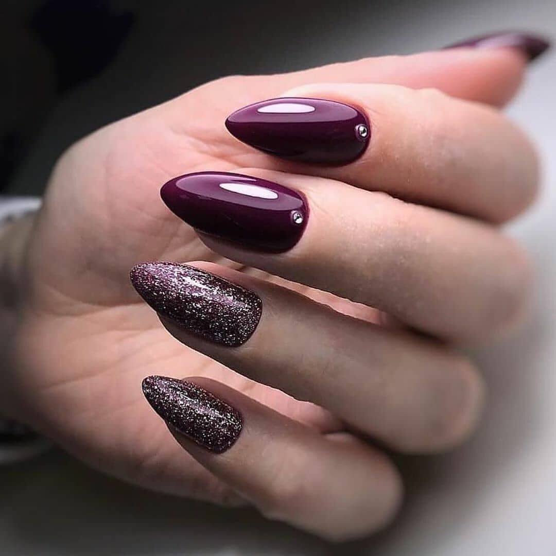 - Мысленно поделите ноготок на две части и покрасьте каждую выбранным тоном;
