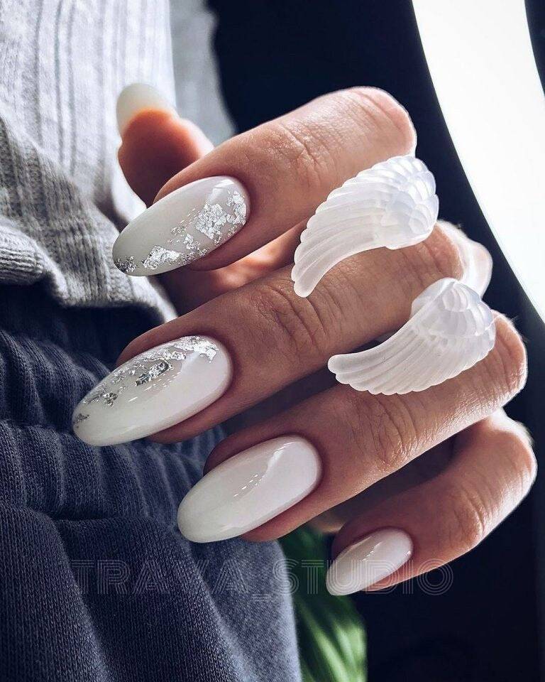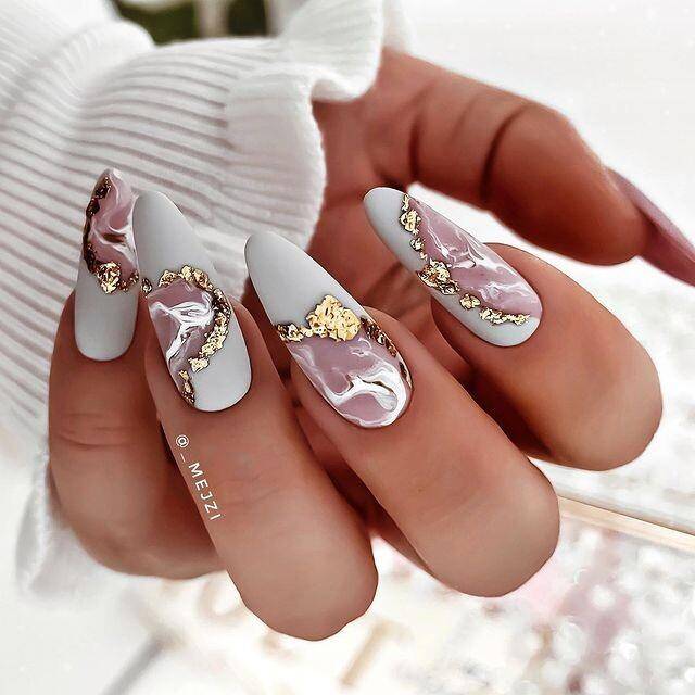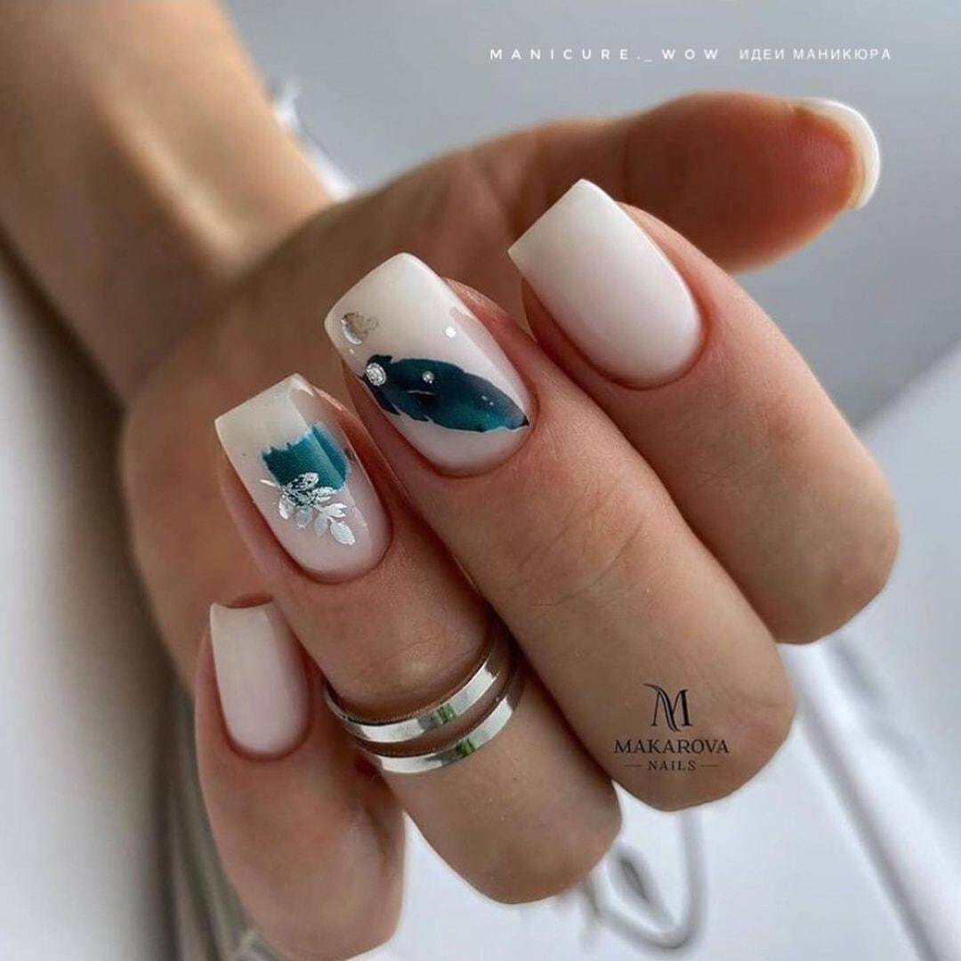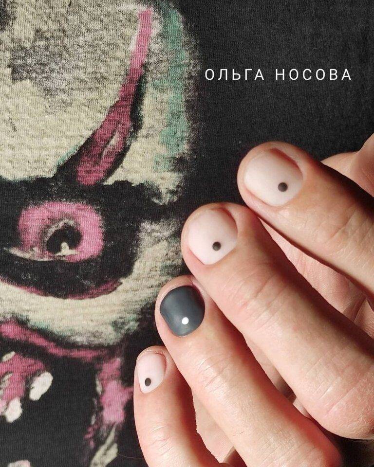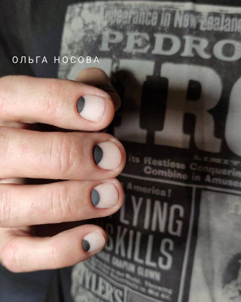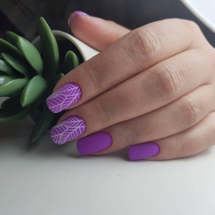 Среди модных трендов — микс матового и глянцевого маникюра. Игра текстур в сочетании с декорами дает потрясающий эффект. Красиво смотрится бархатный нейл-арт в виде френча, французского, лунного маникюра. На матовый фон хорошо смотрятся флористические рисунки, стразы, лепка.