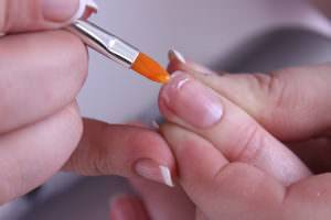 - Сначала подготавливают ногтевую пластину, делают гигиенический маникюр, выпиливает форму.