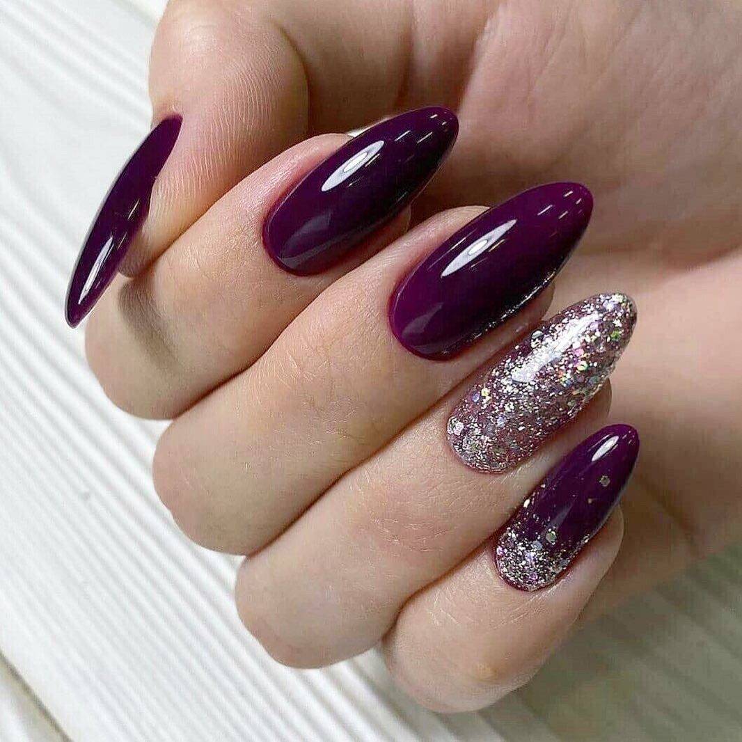 - Покройте выбранным цветом короткие пластины и оставьте один для омбре;
