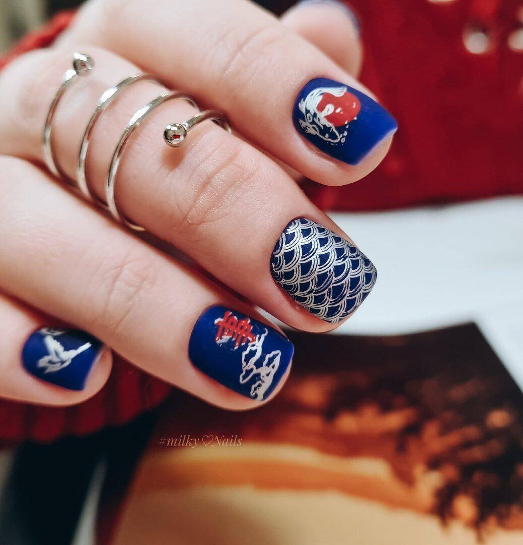 - Перенесите на ноготок выбранный узор с помощью техники стемпинга;