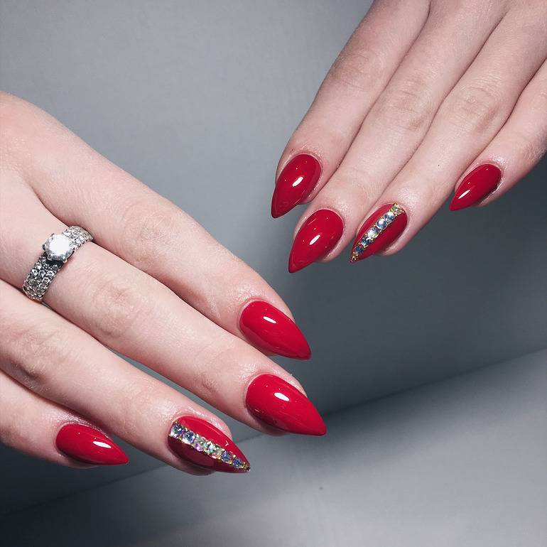 Красный цвет является наиболее распространённым в сфере нейл индустрии. Яркий, строгий и сочный — он станет шикарным украшением женских рук.
