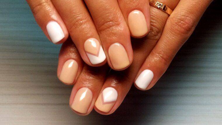 На фото новинки с нюдовым шеллаком на короткие ноготки 2019: