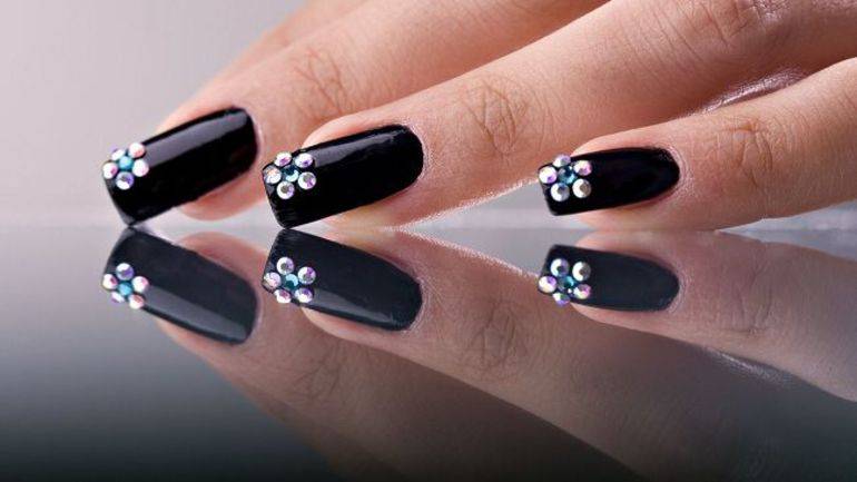 Черный маникюр — это классика, всегда остающаяся в моде. Подходит не только длинным, но и небольшим ноготкам, визуально их удлиняя. К тому же на его базе можно создать прекрасные рисунки и сделать декор оригинальным.