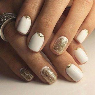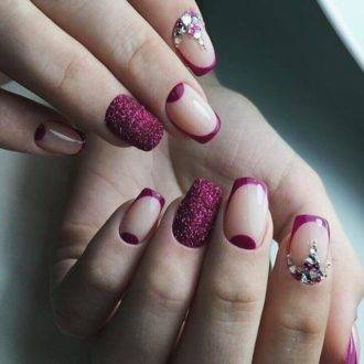 Для преображения простого маникюра в праздничный модный нейл-арт понадобиться блестящий декор – блестки, стразы и маникюрная пудра. Обильное число блестящих элементов нейл-дизайнеры советуют применять в осенне-зимнем маникюре. Весной и летом множество блестящих дополнений нужно минимизировать. Без фанатизма нужно украшать короткие ноготки – стразы и камешки будут расширять и сокращать визуально ногтевую пластину, тогда надо использовать несколько (до 3 штук) мелких деталей декора.