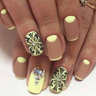 Нюдовые оттенки лаков, а также французский маникюр -такой вариант является классикой, всегда остающейся в моде. Бежевые цвета идеально подходят для коротких ногтей, позволяя скрыть все недостатки и сделать руки ухоженными.
