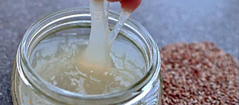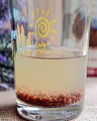 - В небольшой емкости смешиваются 2 столовые ложки семени льна со стаканом воды, после чего эта смесь нагревается и кипит в течение 15 минут.