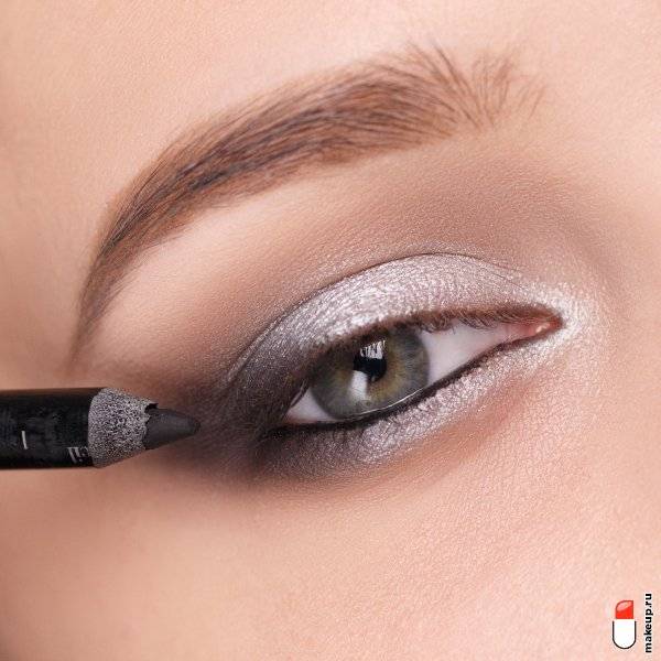 - Этот оттенок довольно самодостаточный, но «выступать соло» в макияже ему не рекомендуется, иначе результат может получится упрощенным и вульгарным. Куда красивее будет выглядеть макияж серебряным карандашом и нежно-голубыми тенями. Хотя для модных показов визажисты нередко используют именно монохромный make up с серебристые тенями, но их цели обычно кардинально отличаются от целей обычных девушек при создании макияжа.