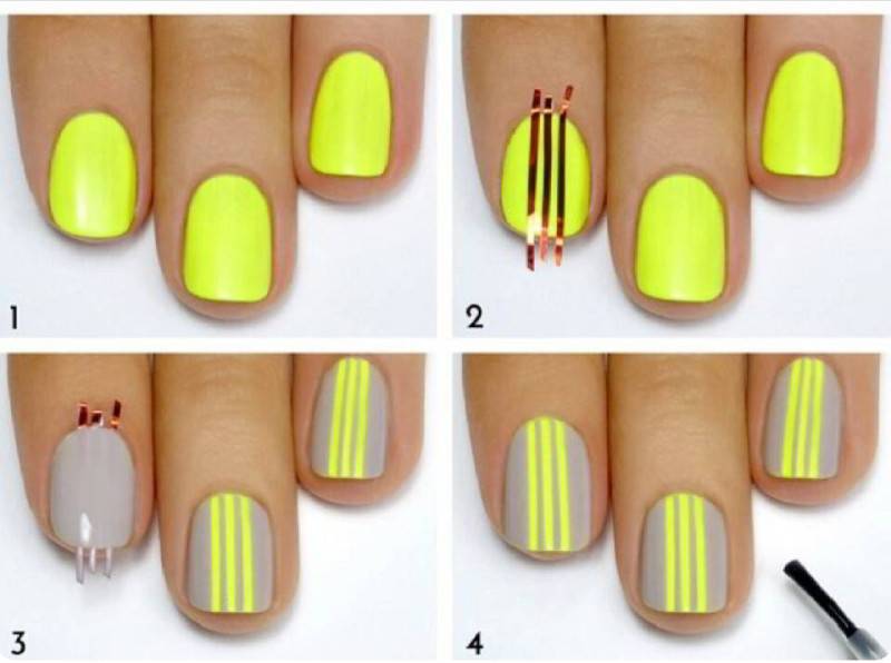Самый простой маникюр при помощи скотча — это маникюр с различными полосками или цветными блоками: