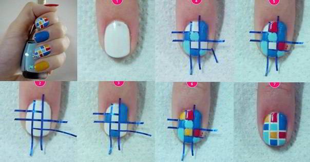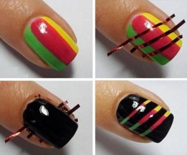 Самый простой маникюр при помощи скотча — это маникюр с различными полосками или цветными блоками: