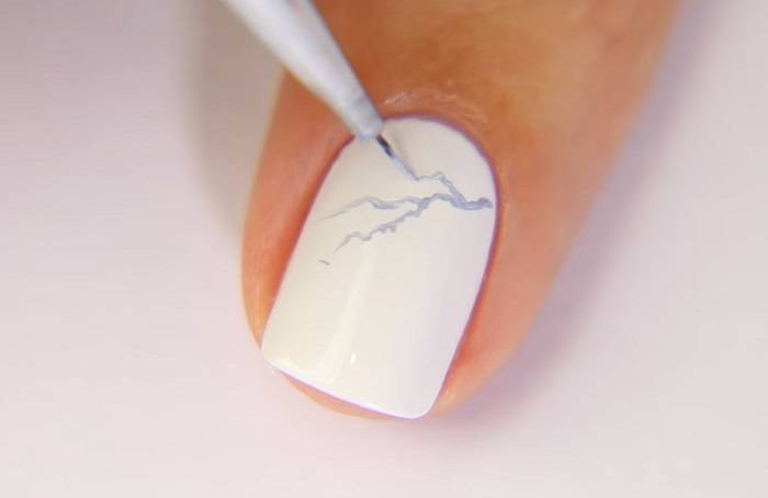 - Используя инструмент, сделайте узор, аккуратно смешивая лаки между собой или, наоборот, выводя четкие линии.