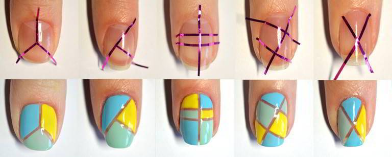Лучше всего, с помощью скотча, получается создавать на ногтях различные геометрические мотивы. Также он идеально подходит для выполнения френча.