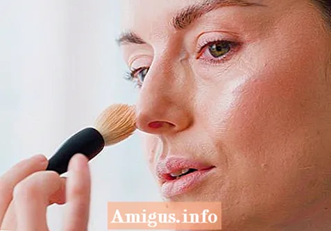 - Воспользуйтесь мерцающей пудрой, нанеся ее крупной кистью.