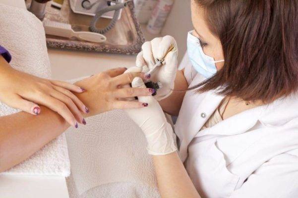 - Выполнение обработки ноготков. При работе с гелем не обязательно полностью