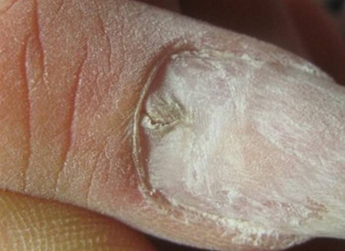 Инфекция всегда будет сопровождаться другими симптомами воспаления (покраснение кутикулы, болезненность, жидкость под ногтями), а бытовые причины имеют менее выраженный характер и лечатся гораздо проще, быстрее.