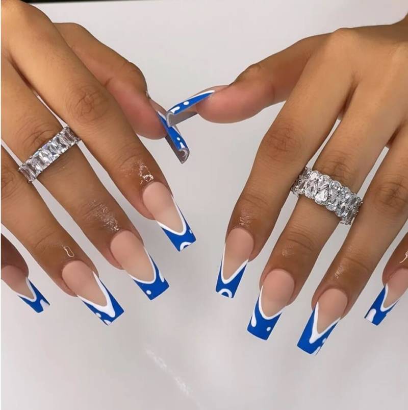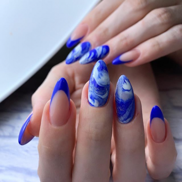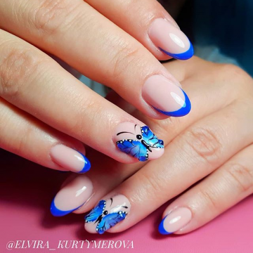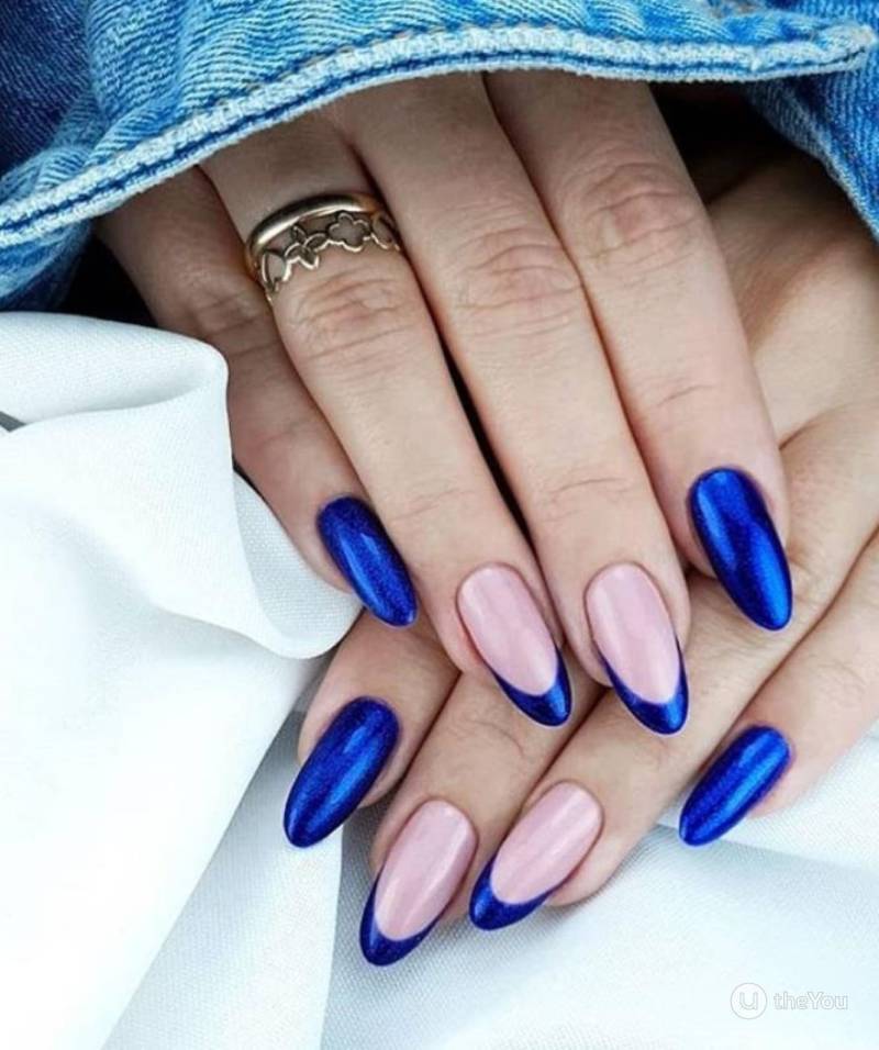 Синий френч на среднюю длину и длинные ногти: фото-идеи 2022-2023