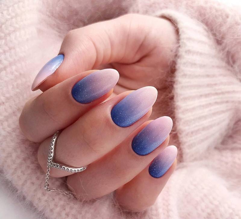 Густой и насыщенный цвет августовского чистого неба. Он красив и эффектен сам по себе. Вы можете обойтись минималистичным дизайном и сделать маникюр только с матовым покрытием или соединить все перечисленные цвета в одно модное омбре.