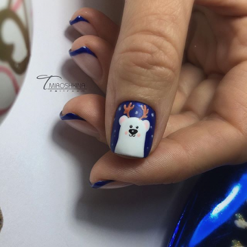 МАНИКЮР СИНИЙ С БЕЛЫМ