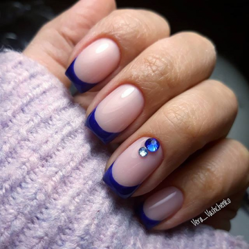 Синий френч на короткие ногти: фото-новинки 2022-2023 года