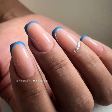 Пронзительный синий Чтобы сделать такой стильный яркий синий французский маникюр, потребуется не слишком много времени. Выполнить дизайн можно на натуральных ногтях, если они достаточно отросли.