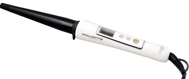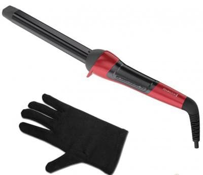 Щипцы от Rowenta с очень тонким стержнем в 10 мм, помогут сделать укладку с мелкими кудрями. В работе плойка очень проста: есть только одна кнопка включения/выключения. Зато в комплекте есть термостойкая перчатка, которая защитит ваши пальцы от случайных ожогов.