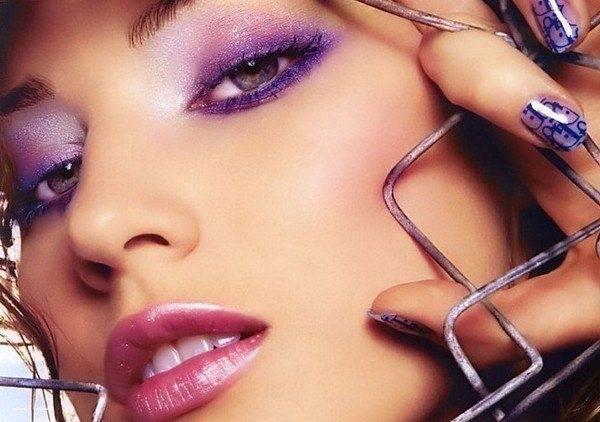 Макияж с фиолетовой или сиреневой помадой для блондинок и брюнеток
