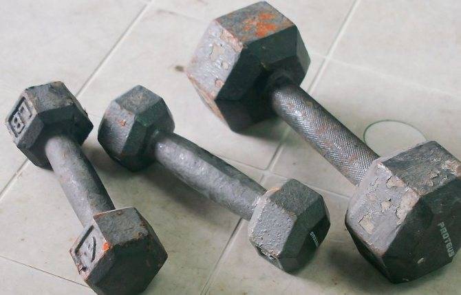 Шаг 1. Для начала нужно отправиться в спортивный магазин и приобрести там подходящие по весу гантели. Не нужно сразу покупать очень тяжелые – стоит выбрать те, с которыми работать будет комфортно.