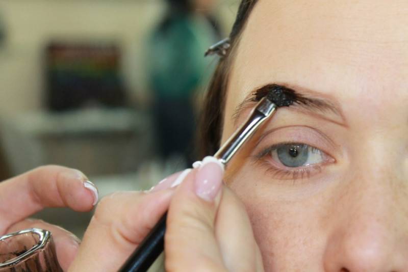 - нужно учитывать цвет волос – окрашивание бровей проводится на 1 , 2 тона светлее,