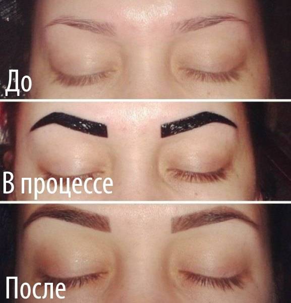 Во время выполнения данной процедуры, которая происходит безопасно и без боли, на верхний слой кожи наносятся линии и точки – они служат границами надбровных дуг. Внутренний слой кожи абсолютно не затрагивается. При таком типе окрашивания получаются красивые и вместе с тем естественные брови, поскольку не используются химически насыщенные красители – вместо них специалист использует хну. Однако для выполнения конкретно этой методики подходит коричневый природный пигмент, а не состав с рыжим оттенком.
