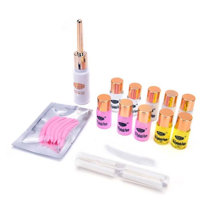 Смеси для кератинового ламинирования можно приобрести в специализированных магазинах. Кроме самих препаратов, в набор входят валики разных размеров, специальные аппликаторы, специальный клей для фиксирования ресниц и апельсиновая палочка.