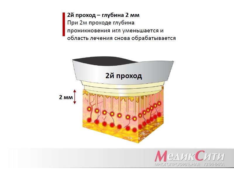 - запуск ускоренного процесса выработки эластина и коллагена в зоне обработки.