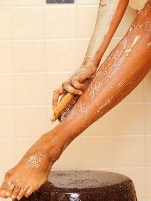 Приготовить смесь из 50 г измельченных кофейных зерен (кофейной гущи), 20 мл кокосового масла и такого же количества жидкого мыла.