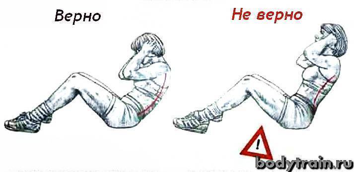 Многие делают данное упражнение неправильно, отрывая от пола спину и поднимая весь корпус вверх. От такого движения нагрузка на мышцы пресса не становится сильнее.